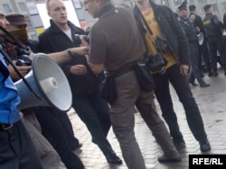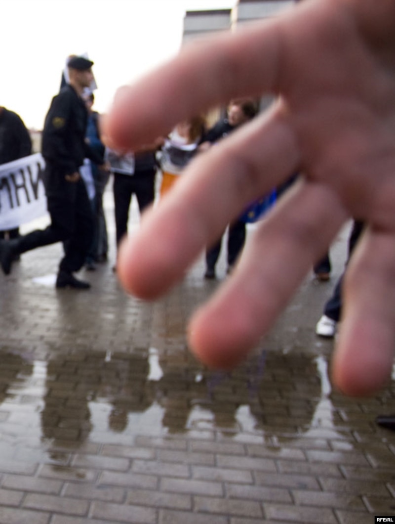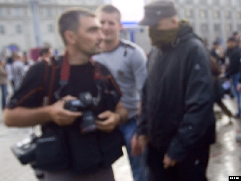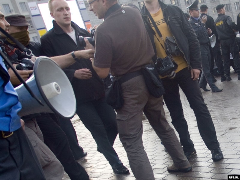Па два чалавекі з спэцслужбаў атачылі кожнага з журналістаў, некаторым парвалі вопратку. Асабліва службісты пільнавалі, каб журналісты не змаглі зьняць сам момант затрыманьня ўдзельнікаў акцыі.