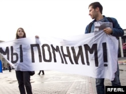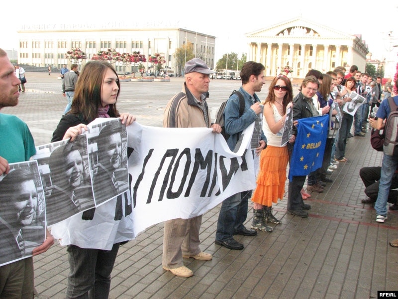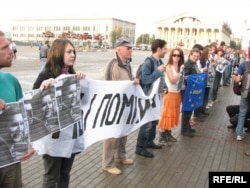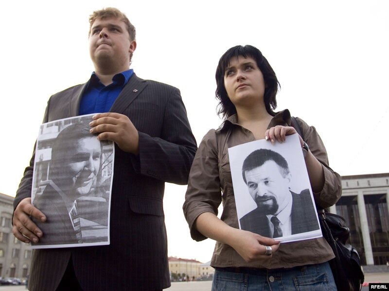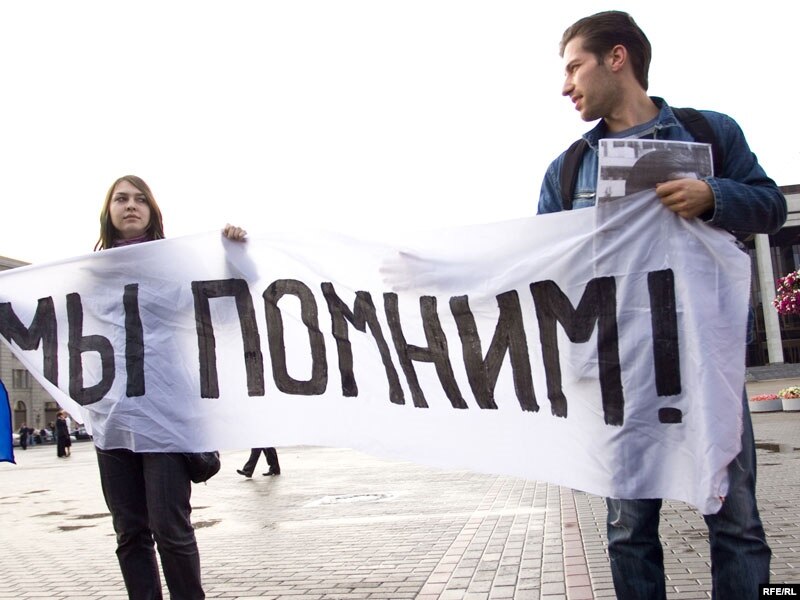 18:01 Дэмакратычныя актывісты на Кастрычніцкай плошчы ўзьнялі транспарант “Мы помнім”, патрэты Анатоля Красоўскага і Віктара Ганчара. Міліцыя папярэджвае, што іх дзеяньні незаконныя і ў выпадку ігнараваньня патрабаваньняў спыніць несанкцыянаваную акцыю яны будуць разагнанаыя. У ланцугу неабыякавых стаяць каля 30 чалавек, сярод іх Сяргей Скрабец і Мікола Статкевіч. На плошчы таксама шмат журналістаў і прадстаўнікоў органаў правапарадку.