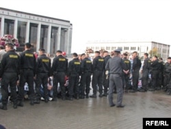 Ля плошчы стаіць чатыры аўтобусы з спэцназам.