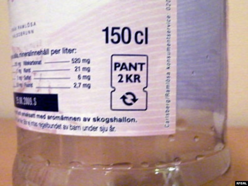 А вось швэды знайшлі куды лепшае за беларусаў выйсьце, як вырашыць праблему плястыкавай залежнасьці. Людзей зацікавілі рублём, дакладней — кронай. У любым швэдзкім горадзе можна здаць розную тару, уключна зь піўнымі бляшанкамі і бутэлькамі з-пад мінэралкі, колы, напояў. Інфармацыя пра тое, што “гэтую бутэльку можна здаць”, пазначаная на этыкетцы разам з коштам у знаку “абаротная бутэлька”. Адмысловымі пунктамі прыёму плястыкавых бутэлек абсталяваныя практычна ўсе гіпэрмаркеты і вялікія прадуктовыя крамы. Сваім выглядам яны нават аддалена не нагадваюць напаўбамжацкага выгляду каморкі на задворках беларускіх крамаў. Працэс аўтаматызаваны, ніякіх чэргаў і боек за пустыя скрыні няма.