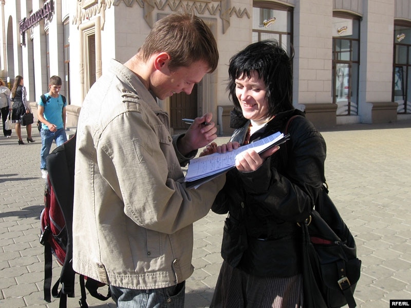 У цэнтры Менску на Прывакзальнай плошчы некалькі актывістаў “Маладога фронту” прапаноўвалі мінакам паставіць свой подпіс і даць пашпартныя зьвесткі пад зваротам “За — беларускую мову!” Калі людзі даведваліся, зь якой мэтай іх спыняюць, то амаль усе пагаджаліся паставіць свой подпіс.