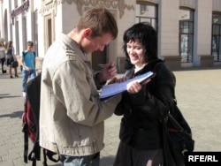 Намесьніца Зьмітра Дашкевіча Наста Палажанка таксама зьбірала подпісы мінакоў: