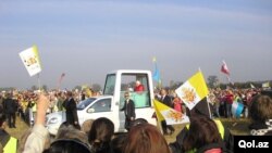 На сустрэчы, апроч чэхаў, было і шмат палякаў. Групы людзей набліжаліся да поля за горадам са сьпевамі, азначаючы сябе як нацыянальнымі сьцягамі, так і сьцягамі Ватыкану.