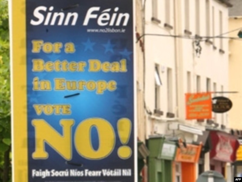 ''Вайна плакатаў'' у Дубліне перад рэфэрэндумам. На плакаце заклік сказаць Лісабонскай дамове ''НЕ!''