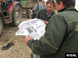 Саян: “Па тэрміне зносу трэба “на ўтыль” — 17 гадоў. Ломіцца, што, вядома, адбіваецца на заробку. Але з астатнімі амаль нароўні іду — мо па мільёне заробім. Але тут лепей. У Кругляншчыне аб’ядналі гаспадаркі — за 15 км на працу трэба было езьдзіць. Школу закрылі — а ў мяне трое дзяцей. Кожны дзень ехаць за 12 км — дзе ім грошай набрацца?! Тут школа на месцы, далі дом добры. Там няма працы — сядзі да вечара, пакуль машына завязе дадому. А тут пайшоў, у хаце нешта зрабіў, усю жыўнасьць трымаю. Там 15 мэханізатараў на 3000 га зямлі працавалі да ночы, а тут 9-10 гадзін, і плацяць адсотак, калі болей папрацуем…”