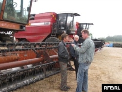 Мо й таму ў хатніх уладальнікаў колькасьць статку скарацілася з 96 да 18 рагуляў. Працягваю напоўніцу скарыстоўваць ранішнія часіны, каб застаць усіх да разьезду на палеткі. На мэхдвары 4 камбайны, зь якіх тры з Нямеччыны. Побач згуртаваліся мэханізатары, якія весела сустракаюць 17-гадовага выпускніка 173 Коханаўскага ПТВ Сяргея Савіка: