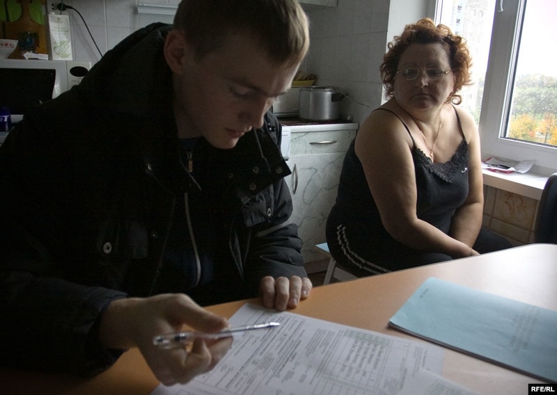 Пераважная большасьць людзей чакаюць перапісчыкаў дома. Студэнткі БДТУ Алена Шарфановіч і Ганна Марушка да 10 гадзіны ранку пасьпелі абыйсьці некалькі кватэраў: