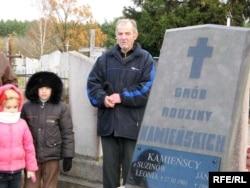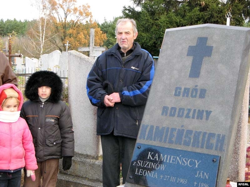 “Мы цяпер былі каля магілы невядомага жаўнера. Дарэчы, у Войску Польскім таксама было многа беларусаў. Жыхары Лунна ў 1928 годзе пазьбіралі парэшткі, якія былі параскіданыя на месцы баёў, і зьнесьлі сюды. На жаль, невядома, хто там быў пахаваны, імёны невядомыя. І вось зрабілі гэты сьціплы помнічак, ён захаваўся. Тут адбываецца ўрачыстасьць штогод на дзень Усіх Сьвятых. А зараз мы ідзем да магілы паўстанца 1863 году, ён быў цывільным кіраўніком Луньненскай акругі, гэта шляхціц зь Мінявічаў, у яго маёнтку зьбіралася зброя, косы перакоўваліся для касінераў. Гэта — Ян Каменскі, ён добры сябра Элізы Ажэшкі, яна апісала яго ў сваім рамане “Над Нёманам” пад імем Андрэя Карчынскага”.