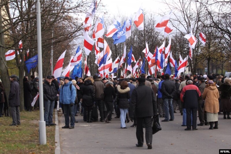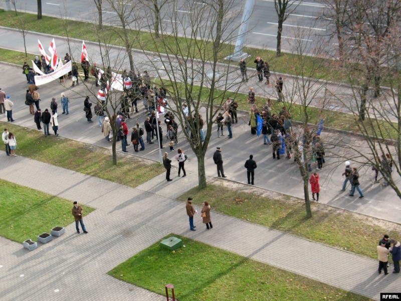 10.50 На пляцоўцы — лідэр руху «За свабоду» Аляксандар Мілінкевіч, Іна Кулей, супрацоўнікі камітэту дапамогі палітрэпрэсаваным.