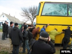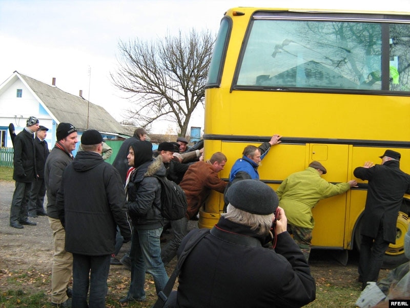 Па імпрэзе аказалася, што зламаўся гасьцявы аўтобус.Давялося штурхаць.