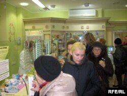 У аптэках дзяржаўнага прадпрыемства “Белфармацыя” таксама стаяць чэргі і няма лекаў. Гутару з наведнікамі аптэкі № 22: