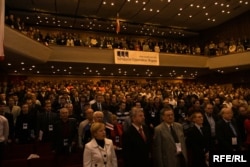 11.10 Праца форуму пачалася з выкананьня гімну “Магутны Божа”. Удзелнічае 809 дэлегатаў.