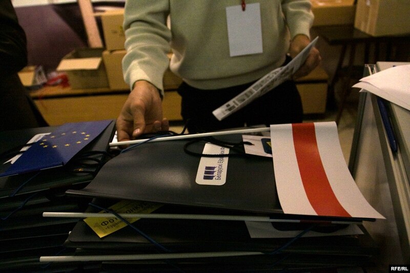 10.45 Заля запоўненая дэлегатамі. Арганізатары кажуць, што рэгістрацыя праходзіць нармальна — безь непрыемнасьцяў і правакацый. Дэлегатам раздаюць бел-чырвона-белыя сьцяжкі і сьцяжкі Эўразьвязу.