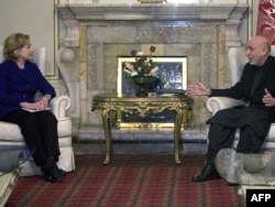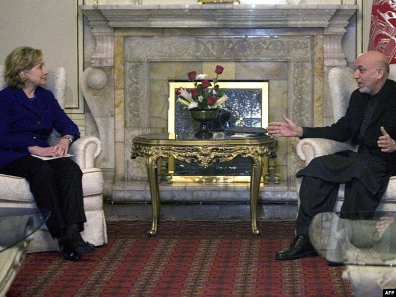 Клінтан: Ёсьць ваенныя і ваенныя. Сярод тых, каго так называюць, ёсьць тыя, хто змагаўся ад імя Аўганістану супраць савецкага саюзу, супраць Аль-Кайды, Талібану і іхных хаўрусьнікаў. І ёсьць людзі, якія дазвалялі сабе вельмі сур’ёзныя парушэньні правоў чалавека і кепскае абыходжаньне зь людзьмі ў часе вайны: з-за гэтага цяжка ацаніць гэтых асобаў і разабрацца, як іх судзіць. Я патлумачыла, што мы хацелі б бачыць у кабінэце людзей прафэсійных, вопытных і кампэтэнтных, якія маглі б рабіць працу, якая ад іх патрабуецца. Я думаю, прэзыдэнт Карзай разумее гэта, і ў мяне склалася ўражаньне, што менавіта так ён і мае намер дзейнічаць.