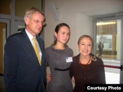 Карл Більт, Тацяна Шапуцька, Бэніта Фэрэра-Вальднэр падчас Форуму грамадзянскай супольнасьці, Брусэль, лістапад 2009. Фота: Facebook Тацяны Шапуцькі