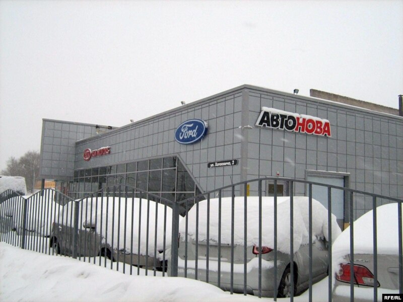 Дылерскія аўтасалёны «Аўтанова» й «Форд» на вуліцы Хатаевіча сёньня былі зачыненыя. Ніхто сюды ня ішоў і ня ехаў. Сыпаўся толькі сьнег.