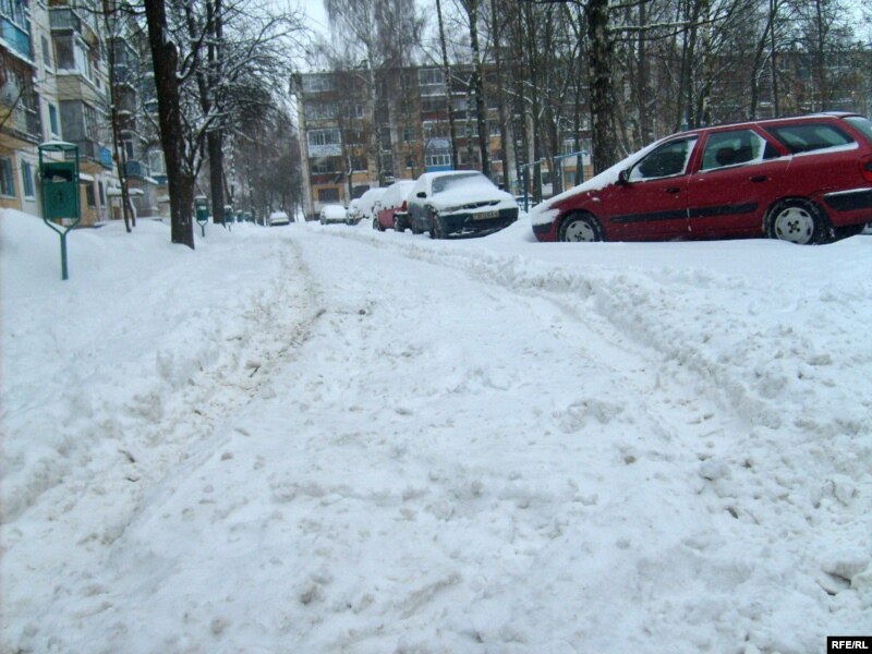 Няпростая сытуацыя з прыбіраньнем сьнегу і ў абласным цэнтры. Галоўныя магістралі больш-менш дагледжаныя, але да пэрыфэрыйных чарга пакуль не дайшла. Не дайшла чарга й да гарадзкіх двароў. Прыватныя машыны выяжджаюць вузкімі каляінамі, а людзі ходзяць пратаптанымі сьцежкамі.