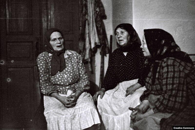 Гэта бабуля Тацянка. А яе сваячка і блізкая-блізкая сяброўка — бабуля Сафея, у мясцовым асяродзьдзі яна звалася ведзьмай. Яна магла зачараваць. Расказвалі мне такое дзіва: аднойчы ў Купальскую ноч яна пайшла на поле і зрабіла завой. А калі робяць завой, чалавек ня можа яго разьвязаць, бо гэта значыла хваробу, нейкая пошасьць найдзе ня проста на вашу сям’ю, а на ваш род. І вось, трэба ж было, прыйшла гэтая бабуля Сафея на поле і ператварылася ў сьвіньню. Я кажу — дзе доказ таго, што вы яе бачылі? Бачылі, таму што яна хадзіла на капытах. Ці вось іншы выпадак. Адкуль вы ведаеце, што гэта была яна? Адказ: Спаймалі яе за валасы, як русалку, і адрэзалі ёй валасы. І потым яна аніколі не здымала з галавы чэпчык. А чаму не здымала? Калі б у яе былі валасы, яна б хадзіла як усе жанчыны. А паколькі яна валодала чараўніцтвам, яе хацелі пакараць...