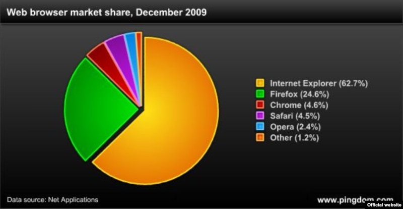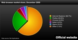 Суадносіны браўзэраў, ужываных інтэрнэт-карыстальнікамі ў 2009 годзе.