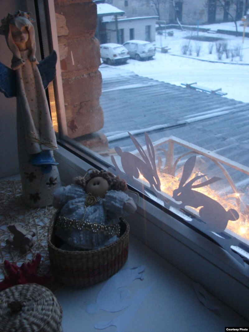 Назіраючы за жыцьцём праз акенца, я неяк прыгадала трапныя парады выкладчыкаў з Эстоніі: “...Каб найлепей зразумець сабе, сваё жыцьцё, варта на яго паглядзець скрозь відашукальнік фотакамэры”. Я пачала здымаць тое, што выпадкова ўбачыла праз Адно Вакно абложанай з усіх бакоў маёй “крэпасьці”... а ў вялікія сьвяты з адчаем крычу: “Жыве Беларусь!”