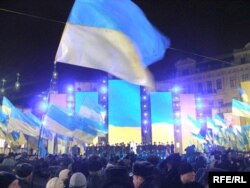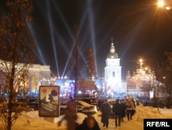 Прыхільнікі лідэра Партыі рэгіёнаў Віктара Януковіча сабраліся на Міхайлаўскай плошчы - тут адбыўся канцэрт эстрадных зорак.