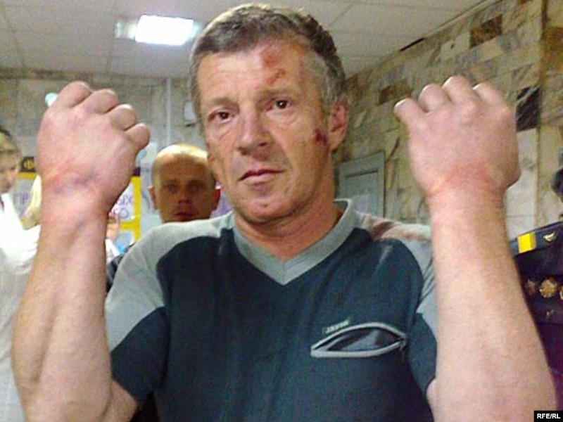 У міліцэйскай машыне Алег Сурган нібыта «цёрся шчокамі аб падлогу» і «біўся галавой аб дзьверы», такім чынам наносячы самому сабе цялесныя пашкоджаньні. Так кажа пацярпелы, міліцыянт Сяргей Дудкевіч.
