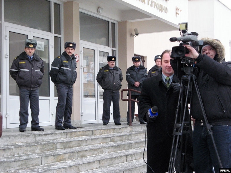 За дзеяньнямі тых, хто сабраўся перад будынкам Кастрычніцкага райаддзелу ўнутраных спраў, сачылі міліцыянты. Яны папярэдзілі пра недапушчальнасьць мітынгу, але людзям не перашкаджалі.