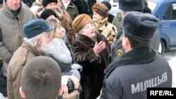 Актывісты аб’яднаньня прыйшлі да міліцыі з той нагоды, што тут, у спэцпрыёмніку, знаходзяцца іхныя паплечнікі Анджэй Пачобут, Мечыслаў Яскевіч і Ігар Банцар, арыштаваныя рашэньнем суду 15 лютага 5 сутак арышту кожны.