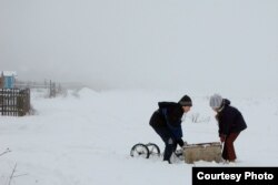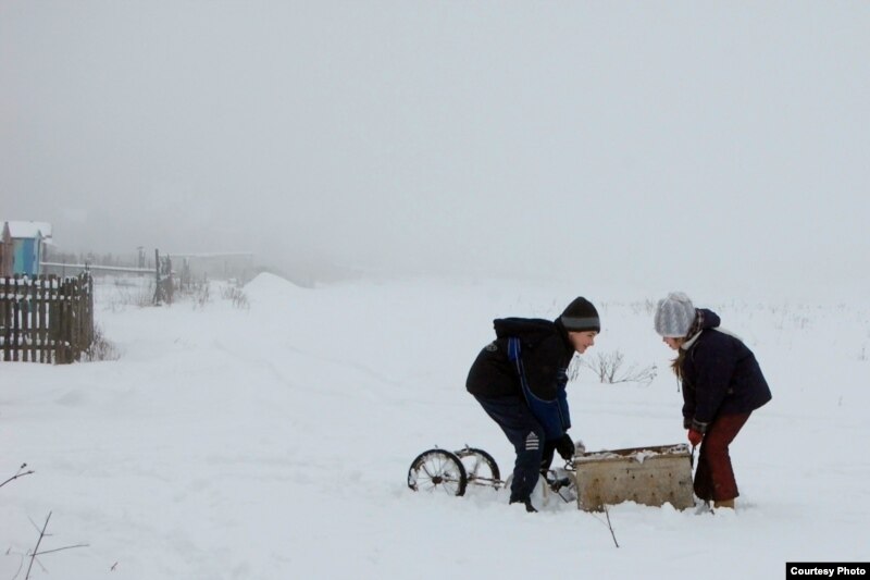 Вёска Капішча, гарадзкая мяжа Менску. Зіма 2009. Вясковыя дзеці гуляюць там, дзе празь некалькі год будуць пабудаваныя шматпавярховікі