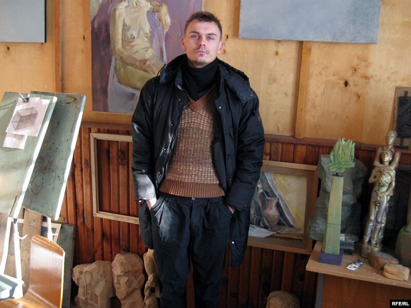 Нехта зь вясковых “добразычліўцаў” пусьціў тады чутку, што хлопец нібы падпаліць сябе, як толькі прыедуць міліцыянты. Праз два месяцы ў Славенях ля драўлянага будынка студыі выяўленчага мастацтва мы сустракаемся зь Юрам — 30-гадовым веліканам пад мэтар дзевяноста з напружана-самотнымі вачыма. І — здаецца, працягваем размову.