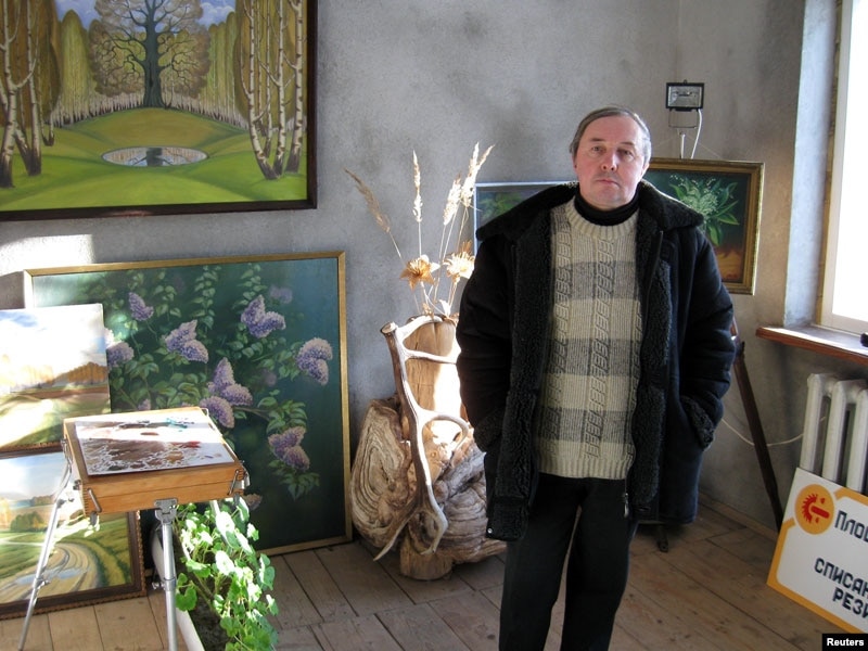 На жаль, спадзяваньні Алы Канстанцінаўны сёньня — пусты гук. Тае ж начы п'яны вартаўнік спаліў сябе і першы паверх адрамантаванага школьнага будынка. Мы ж зь Юр'ем Мяккім накіраваліся яшчэ да аднаго яго калегі — 56-гадовага мастака Анатоля Пасюціна. У хаце маю ўвагу прыцягнуў зроблены ім макет колішняга помніка драўлянага дойлідзтва — царквы Пятра і Паўла. У 60-я гады мінулага стагодзьдзя на вачах маленькага Толі яе разбурыла Савецкая ўлада.