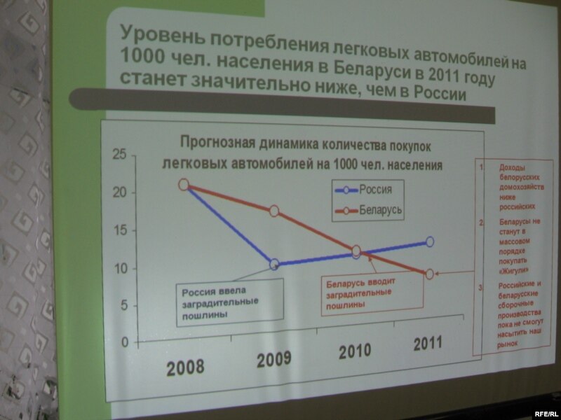 Нагадаем, з 1 ліпеня ў Беларусі, якая ўступіла ў Мытны саюз з Расеяй і Казахстанам, будзе значна паднятае мыта на аўтамабілі, якія ўвозяцца ў краіну. Аналітыкі аўтарынку мяркуюць, што падвышэньне мыта закранае інтарэсы некалькі соцень тысяч беларусаў, а ў будучыні ударыць па сямейным бюджэце мільёнаў жыхароў краіны, паколькі ужо цяпер болей за 2 мільёны беларусы карыстаюцца патрыманымі аўтамабілямі, якія трэба абнаўляць праз 3-4 гады. Між тым пры новым мыце кошты аўтамабіляў падвысяцца амаль ўдвая. Прыкладам, калі “Фольксваген-Пасат” 2005 году цяпер каштуе 11500 даляраў, то будзе каштаваць 21580 даляраў.
