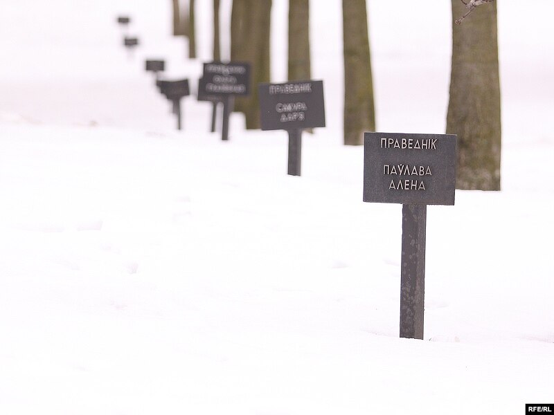 “Пагром 2 сакавіка быў адным з самых буйных. Як сказаў нядаўна адзін з былых вязьняў — ён і зараз тут стаіць — Леанід Рубінштэйн, што, магчыма, з гэтага пакаленьня зьвіліся б новыя вучоныя, новыя Шагалы, але іх няма. Ахвяраў магло быць і больш, калі б ня людзі, алея ў гонар якіх зараз засыпаная сьнегам. Гэта праведнікі сьвету — беларусы, людзі іншых нацыянальнасьцяў, якія ў гады вайны ратавалі габрэяў, рызыкуючы ўласным жыцьцём. Нізкі ім паклон”.