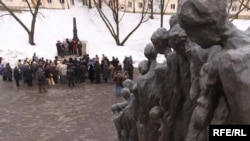 2 красавіка 1942 году нацысты ўчынілі першы буйны габрэйскі пагром, у якім загінулі 5 тысяч чалавек: старых, жанчын, дзяцей. Ушанаваць памяць нявінна закатаваных мірных людзей да “Ямы” сёньня прыйшлі іх нашчадкі. Гаворыць адзін зь іх, Уладзімер Малінкін: