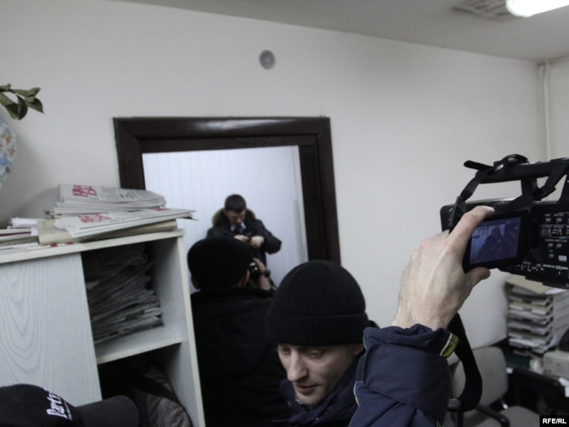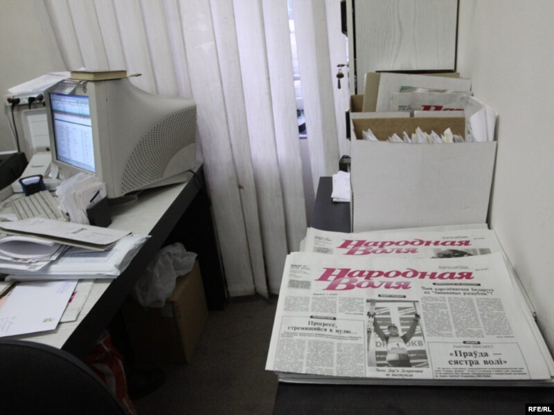 Галоўны рэдактар «Народнай волі»Іосіф Сярэдзіч, намесьніца рэдактара Сьвятлана Калінкіна і праваабаронца Гары Паганяйла.