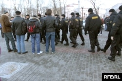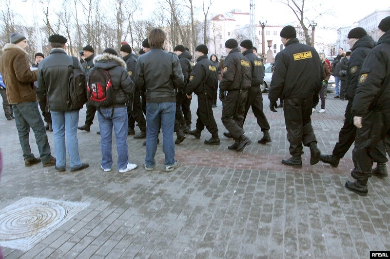 17:57 Падыходы да Кастрычніцкай плошчы ачэпленыя міліцыянтамі у цывільным. На падыходах яны затрымліваюць актывістаў. Перад 18-й гадзінай ля скрыжаваньня з вуліцай Леніна быў затрыманы Мікола Дземідзенка. Потым на плошчы затрымалі Алеся Чарнышова і актывіста Дзьмітрыя Кахаўца.