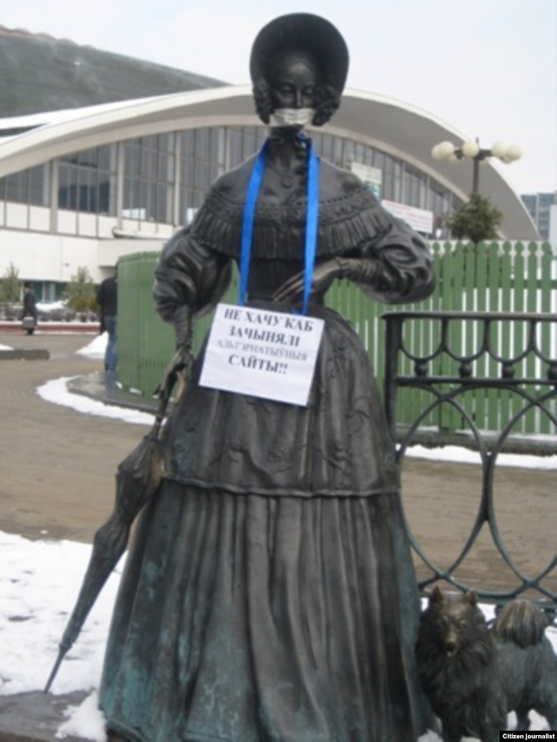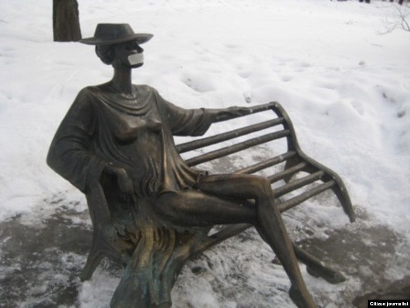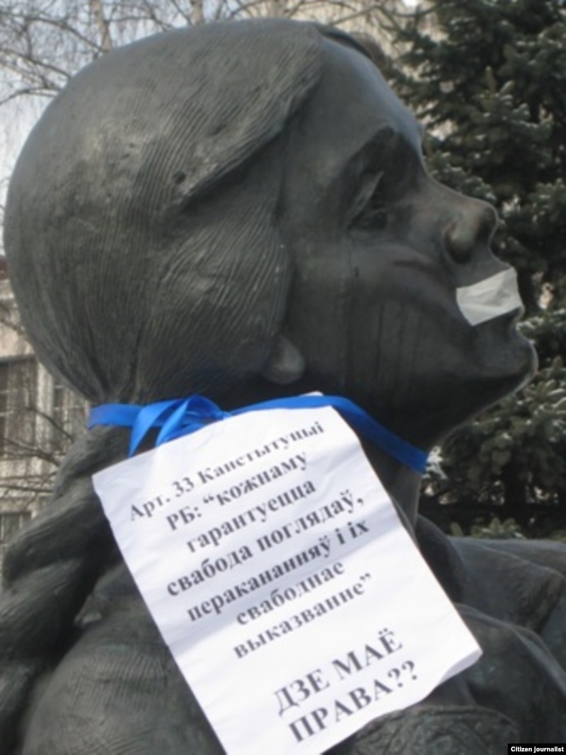 У самой Беларусі, у Менску, маладыя людзі пратэставалі супраць ціску на незалежных журналістаў. Яны завязалі рот гарадзкім статуям і скульптурам і павесілі на іх наступныя плякаты: “У Беларусі забаронена казаць праўду!”, “Не ціску на незалежную прэсу!”, “Не хачу, каб зачынялі незалежныя сайты!”