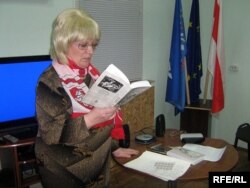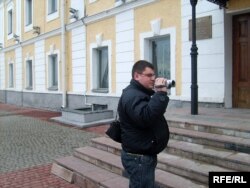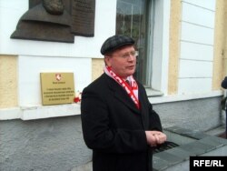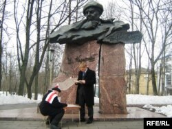 Віцебскі апазыцыянэр Барыс Хамайда пісаў сёньня агульнанацыянальную дыктоўку каля помніка Ўладзімеру Караткевічу. Тэкст яму дыктаваў сябар КХП БНФ Сяргей Каваленка.