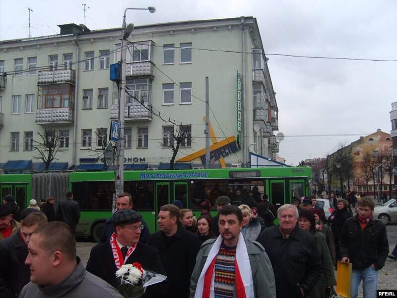 А 17 гадзіне грамада з трыццаці чалавек сабралася ля абласнога краязнаўчага музэю. У яго будынку ў 1918 годзе на агульнагарадзкім сходзе была прызнаная ўлада БНР у Магілёве. Сёньня ля сымбалічнай шыльды правялі традыцыйны ўжо мітынг, усклалі кветкі.