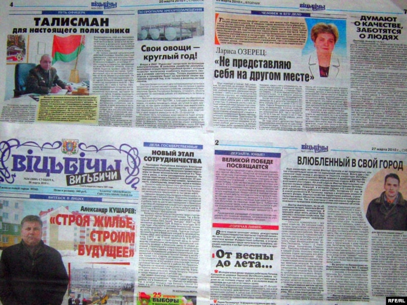 Раённая газэта «Наша Талачыншчына» яшчэ ў лютым надрукавала нарысы пра дырэктара Коханаўскай сярэдняй школы Ірыну Талкачову, старшыню СВК «Краснасельле» Сяргея Марчанку, а таксама пра іншых кіраўнікоў і чыноўнікаў раённага маштабу, якія пасьля 25-га сакавіка сталі кандыдатамі. Тое самае ад пачатку сакавіка рабіла і «Аршанская газэта». А таксама гарадзкая газэта «Віцьбічы», якая з нумара ў нумар друкавала фотаздымкі і нарысы пра тых, каго пазьней зарэгістравалі кандыдатамі ў дэпутаты гарсавету: пра ваенкама Канстанціна Ходасава і намесьніка дырэктара віцебскага ДБК Аляксандра Кушарава ў нумары ад 20 сакавіка, яшчэ праз тры дні — пра дырэктарку школы Ларысу Азярэц. Цягам месяца былі надрукаваны артыкулы ці не пра ўсіх праўладных кандыдатаў.