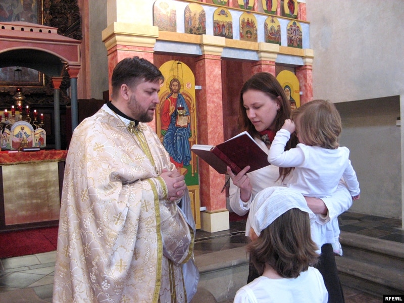 Падчас службы адбыўся хрост дзьвюх маленькіх праскіх беларусак – Паўліны ды Івоны Глыбоўскіх.