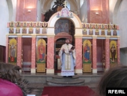 Айцец Андрэй Абламейка гаворыць казаньне.