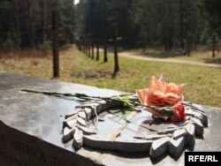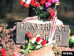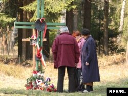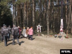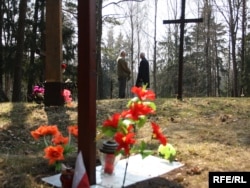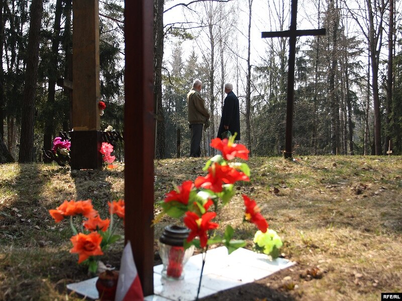Шмат кветак і зьнічоў на гэтую Радаўніцу ў Курапатах было каля крыжа «Стража польскіх магіл». Гэтак людзі ўшаноўвалі памяць ахвяраў трагедыі каля Катыні: