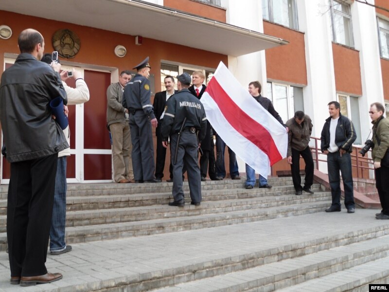 Да будынку суду зьехаліся адразу некалькі міліцэйскіх машын. Супрацоўнікі міліцыі заявілі, што прысутныя сабраліся на несанкцыянаваны мітынг. Усё, што адбывалася, здымалі некалькі апэратараў у цывільным і ў форме.