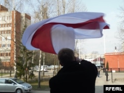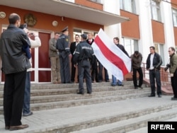 Спадар Хамайда паехаў у Кастрычніцкі РАУС, куды завезьлі затрыманага за сёньняшнюю несанкцыянаваную акцыю Сяргея Каваленку. Ён паведаміў, што нехта з хлопцаў вывесіў бел-чырвона-белы сьцяг і на будынку райаддзелу. Там зараз вырашаюць, як пакараць актывіста, як прыйшоў у суд пад нацыянальным сьцягам.