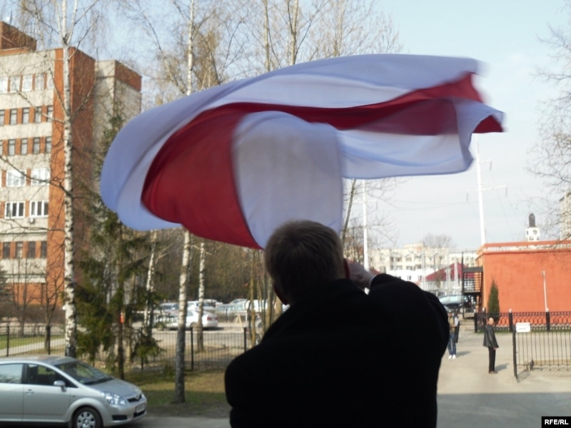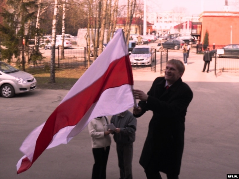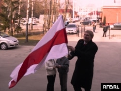 Узьняўшы сьцяг над галавой, Каваленка прывітаў прысутных — аднапартыйцаў, грамадзкіх актывістаў, праваабаронцаў і журналістаў, якія прыйшлі на ягоны суд. Потым разьвярнуўся тварам да вуліцы і гукнуў мінакам: “Жыве Беларусь! Мяне будуць судзіць за гэты сьцяг”.