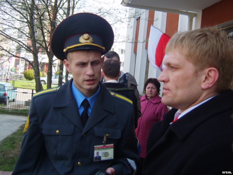 Міліцыянт: «Калі ласка, не крычыце. Ну калі ласка! Вы ня маеце права тут праводзіць мітынг».