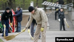 Кіраўнік Беларусі Аляксандар Лукашэнка разам са сваім малодшым сынам Мікалаем узяў удзел у рэспубліканскім суботніку. Абодва Лукашэнкі працавалі на пляцоўцы ў Менску, дзе пачынаецца будаўніцтва новага будынку дзяржаўнага музэю гісторыі Вялікай Айчыннай вайны.