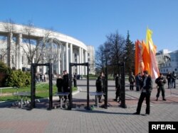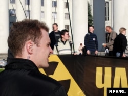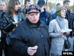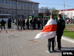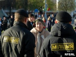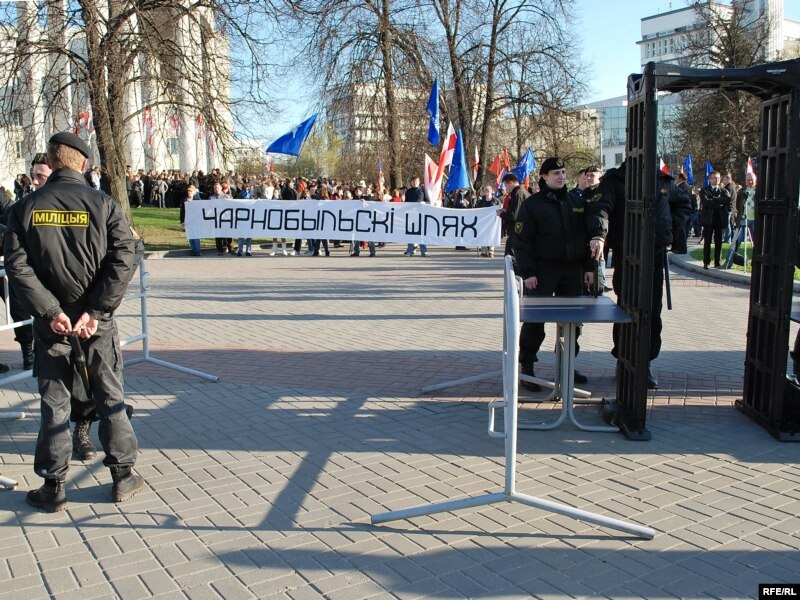 Тут прысутнічаць і супрацоўнікі АМОНу, якія, дарэчы, маюць значкі ліквідатараў аварыі на ЧАЭС. Я запыталася ў аднаго зь іх, ці яны падтрымліваюць гэтую акцыю, тыя сказалі, што не падтрымліваюць, што лепш было б ускласьці кветкі да магілаў. А на пытаньне, ці лічаць яны што ўсе праблемы Чарнобыля вырашаныя, амонаўцы прамаўчалі ў адказ.