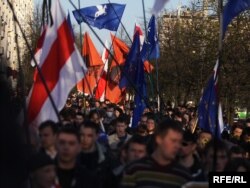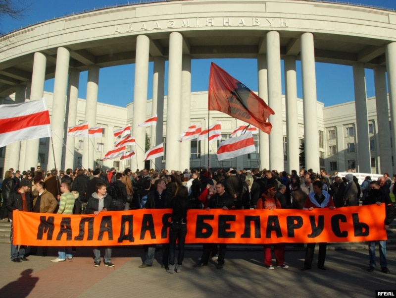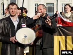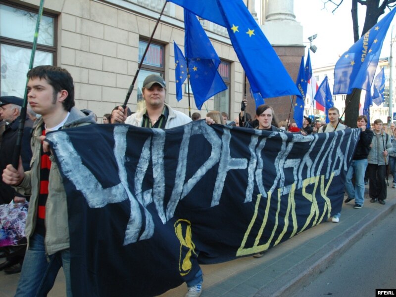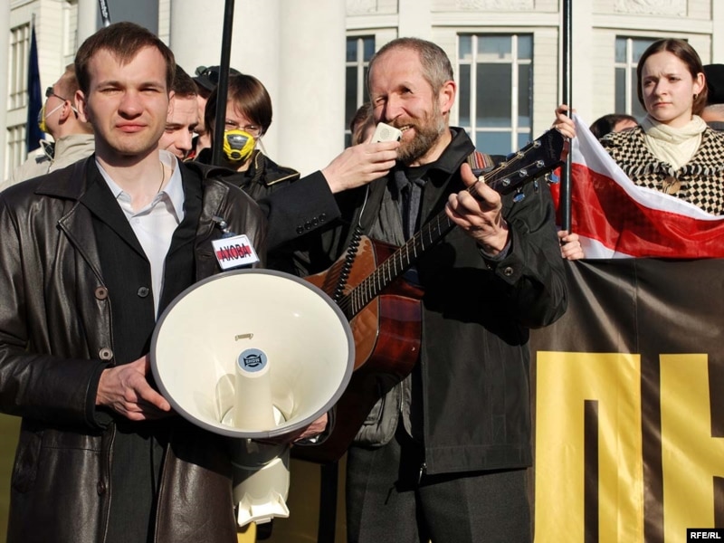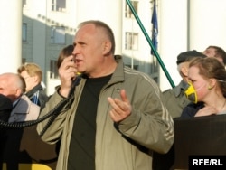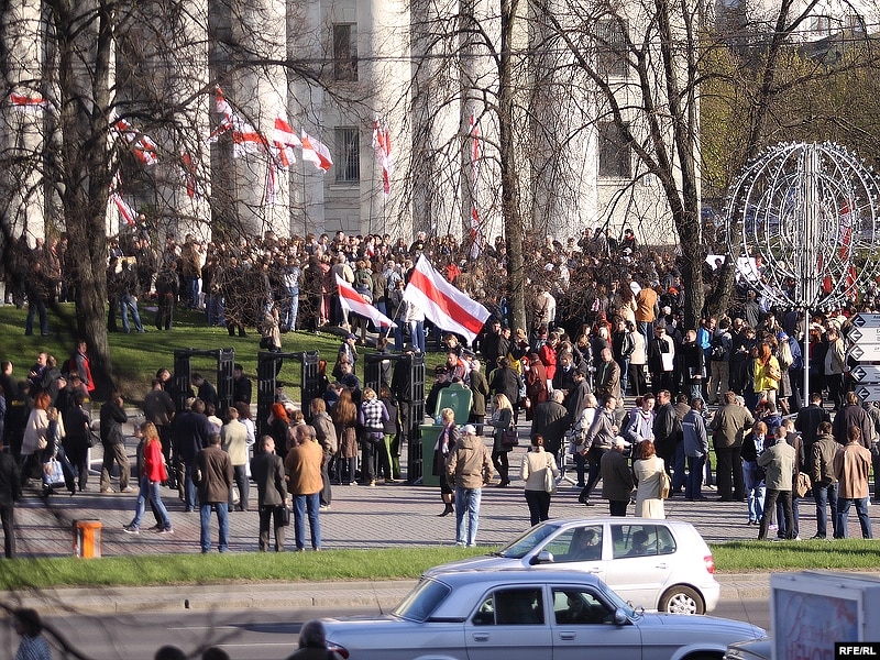 18.20 На мітынгу выступае лідэр «Маладога фронту» Зьміцер Дашкевіч, які заклікае народ пайсьці да Чарнобыльскай капліцы.